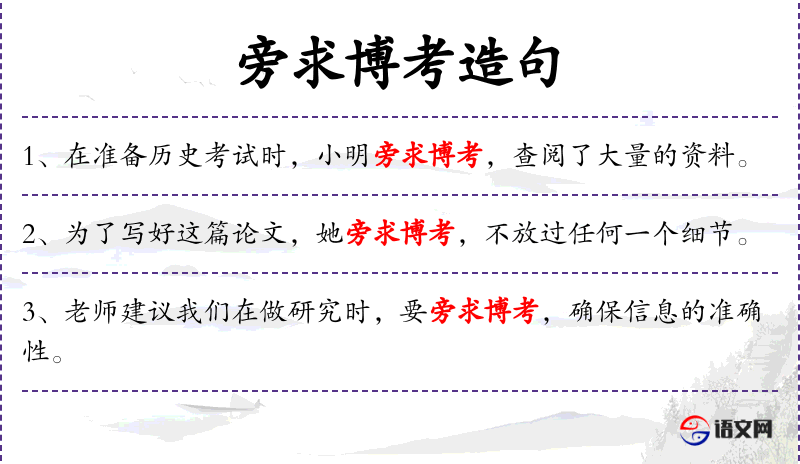 - 旁求博考:成语,意为广泛地寻求和深入地考察。