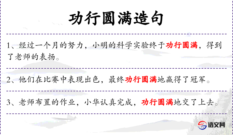 句子:“他们在这次环保活动中做出了巨大贡献,功行圆满地达到了目标。”