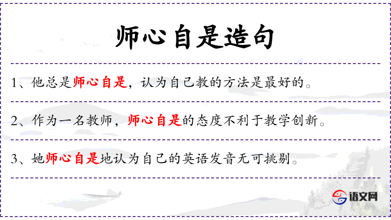 句子:“[她师心自是地认为自己的教学方法是最先进的。]”