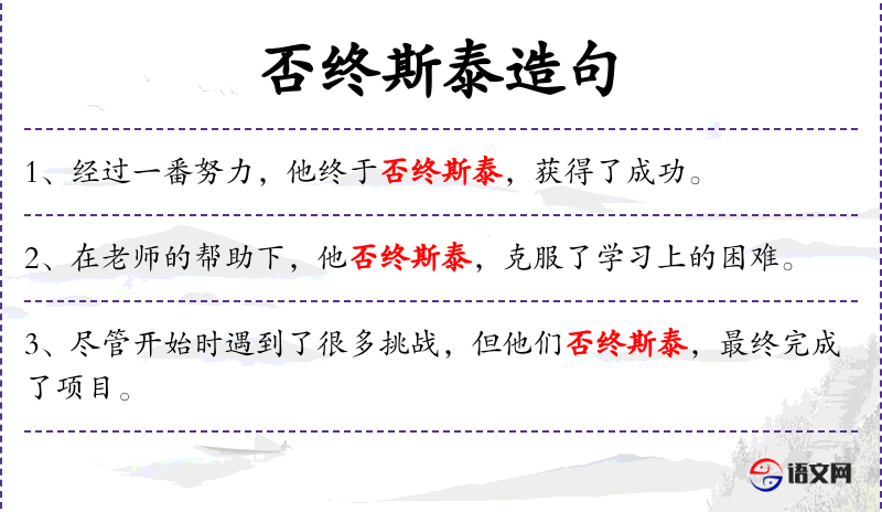 - 否终斯泰:这个短语似乎有误,可能是“不懈努力”的误写。