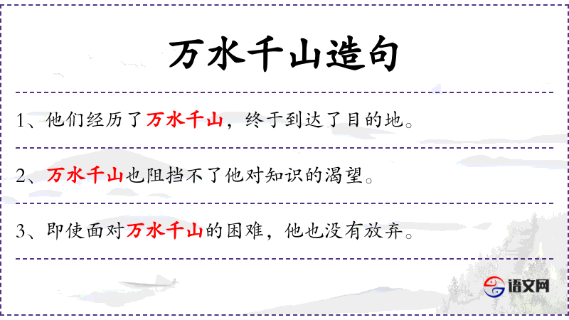 “万水千山”这个成语源自古代,常用来形容旅途的艰辛。这个句子可能与文化中对坚韧和勇气的重视有关,强调在困难面前保持坚强和勇敢的重要性。