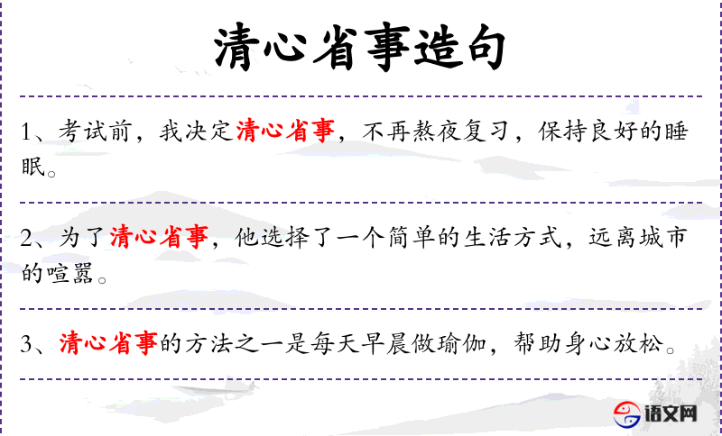 1. 【清心省事】 指心境清静,政事杂务简省。