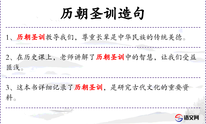 句子:“学生们通过学*历朝圣训,更好地理解了古代社会的伦理道德。”