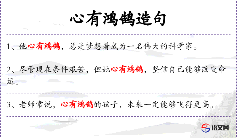 - 英文:使用了“ambition of a swan goose”来表达“鸿鹄之志”,强调了远大的志向。