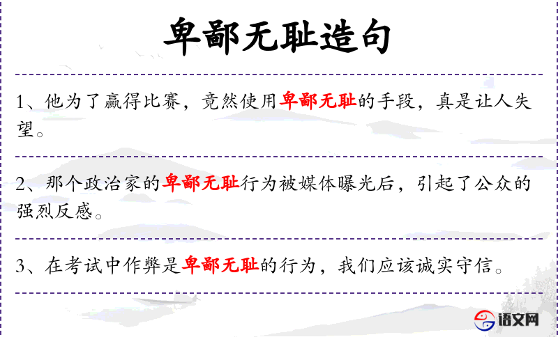 - 卑鄙无耻:形容词,指行为或人的品质极其恶劣,不道德。