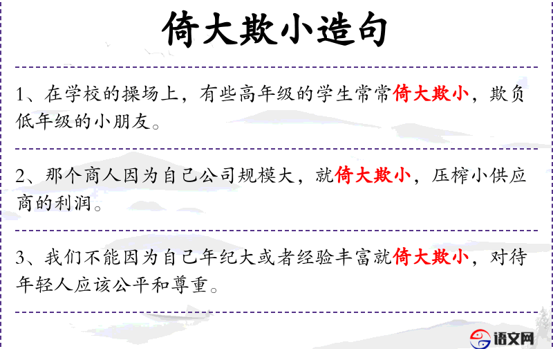 1. 【倚大欺小】 凭借自己强大去欺负弱小的人