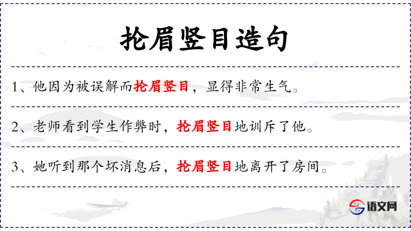 - 抡眉竖目:这个成语体现了**文化中对表情和情绪的描述,强调了情绪的强烈和直接。