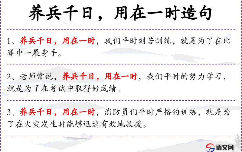 - 成语:“养兵千日,用在一时”反映了**传统文化中对长期准备和短期应用的重视。