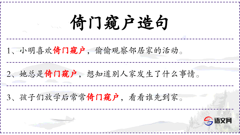 1. 【倚门窥户】 指攀附企望于他人。