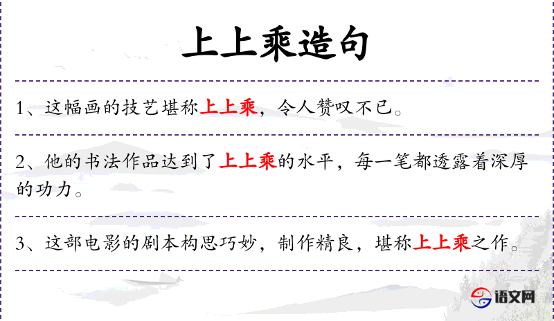 1. 【上上乘】 等级最高的。