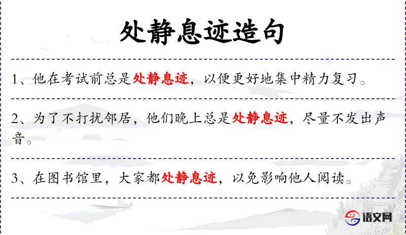 - 处静息迹:成语,意为保持安静,不发出声音。