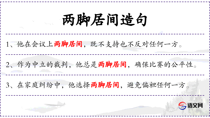 - 两脚居间:比喻保持中立或不偏不倚的态度。