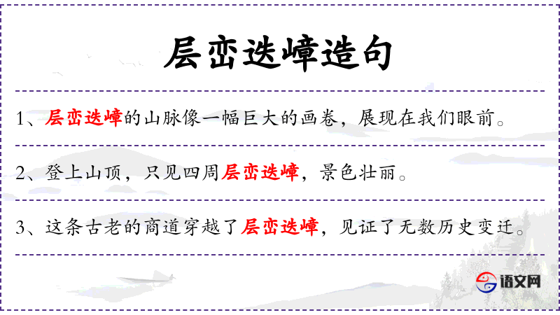 - 宾语:“层峦迭嶂”