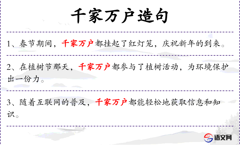 - 主语:千家万户