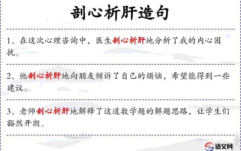 - 剖心析肝:这个成语源自**古代,形容非常认真和细致的态度。