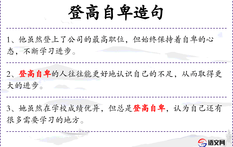 1. 【登高自卑】 - 比喻事情的进行有一定的顺序。