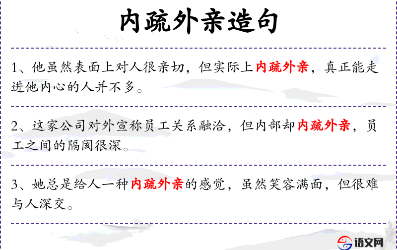 - “内疏外亲”反映了一种常见的社交现象,即人们在不同社交圈中可能表现出不同的行为模式。这种行为可能受到文化背景和社会*俗的影响。