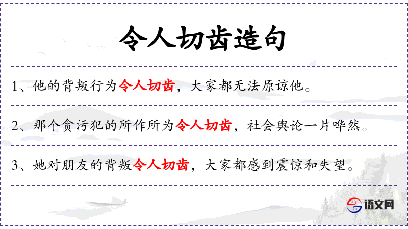 - 令人切齿:形容非常愤怒或憎恨。