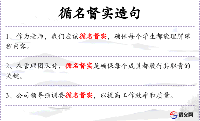 - 循名督实:按照名称或名义来监督实际,即名实相符。