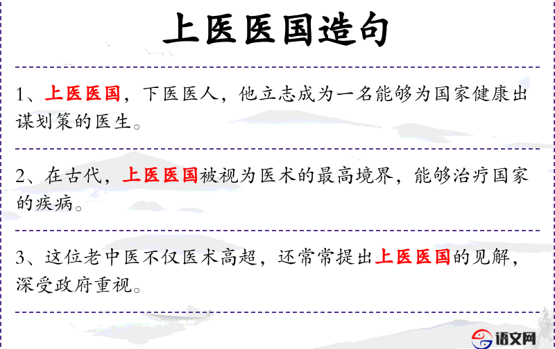 1. 【上医医国】 - 上医:高明的医生,比喻高贤;医国:指为国家除患祛弊。高贤能治理好国家。