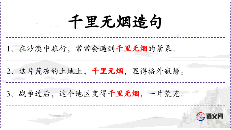 - 宾语:千里无烟,一片荒芜