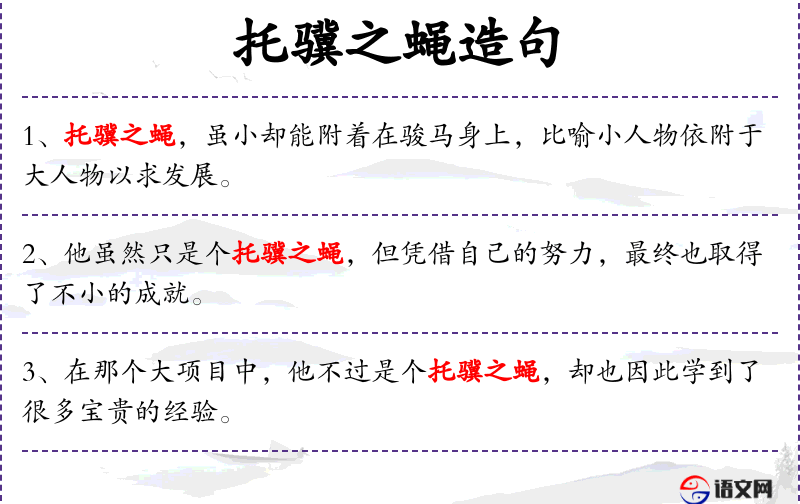- 托骥之蝇:成语,比喻借助有才能的人来达到自己的目的。