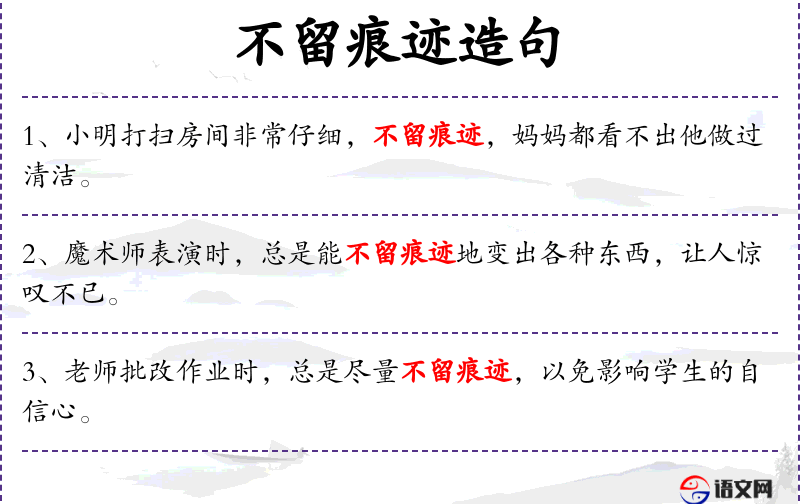 - 不留痕迹:形容动作隐秘,不留下任何迹象。