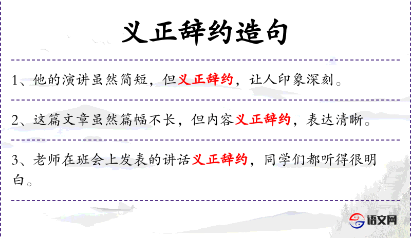 老师在班会上发表的讲话义正辞约,同学们都听得很明白。