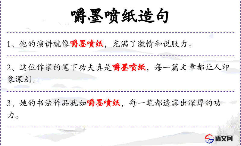 - 嚼墨喷纸:比喻表达,形象地描述发言的犀利和有力。