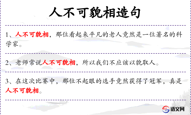 - 人不可貌相:成语,意思是不能仅凭外表判断一个人。