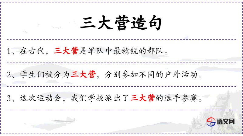 1. 【三大营】 - 明永乐时,京军分三大营,即五军营,肄习营阵;三千营,肄习巡哨;神机营,肄习火器。
