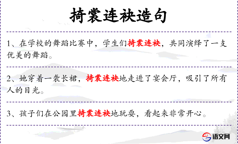 - 礼貌用语:在描述正式场合时,使用“掎裳连袂”这样的成语增加了文雅和庄重的氛围。