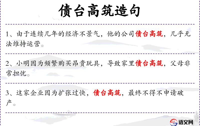 “债台高筑”是一个成语,源自古代,比喻债务累积到无法偿还的地步。这个成语反映了文化中对债务问题的重视和警惕。