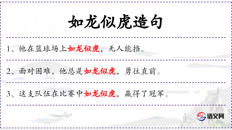 “如龙似虎”是文化中的成语,用来形容人非常勇猛有力。这个成语来源于古代对龙和虎的崇拜,认为它们是力量和勇气的象征。