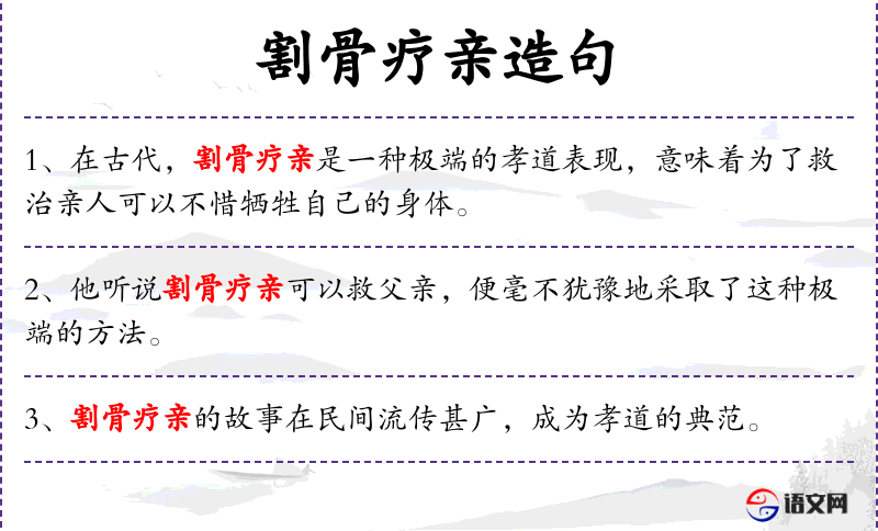 句子:“在古代,割骨疗亲是一种极端的孝道表现,意味着为了救治亲人可以不惜牺牲自己的身体。”