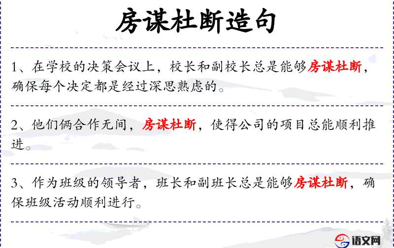句子:“在制定计划时,他们总是能够房谋杜断,确保计划的周密性和可行性。”