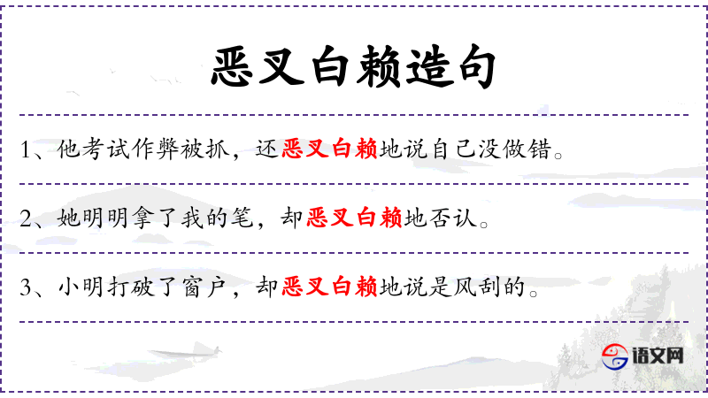 - 恶叉白赖:形容词短语,表示无理取闹、不讲理。