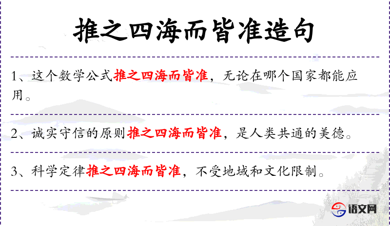 - 推之四海而皆准:意为无论在任何地方都适用,具有普遍性。
