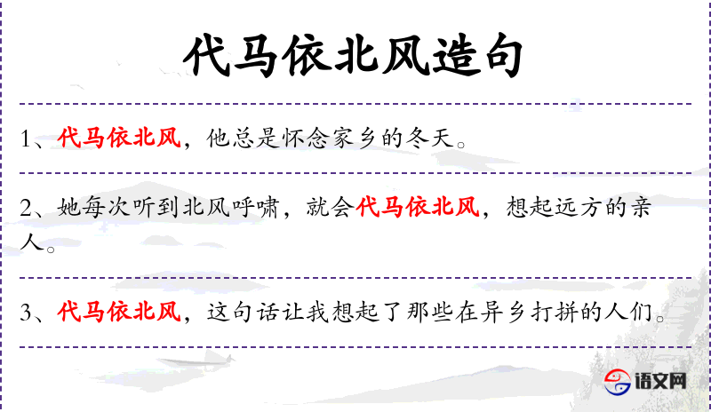 - 代马依北风:这个短语可能来源于某个成语或典故,具体含义需要结合上下文或文化背景来理解。