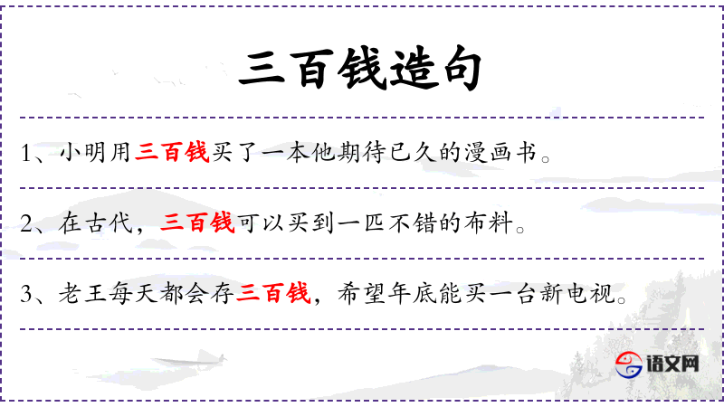 1. 【三百钱】 - 三百青铜钱。