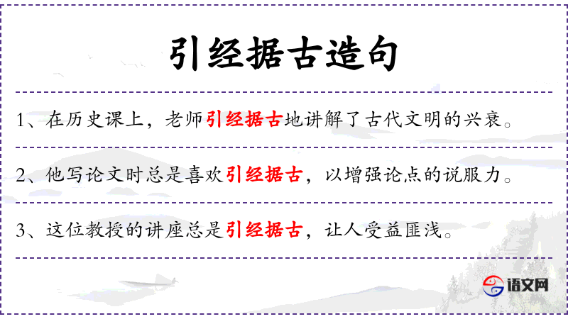 - 引经据古:援引古训、引经据典