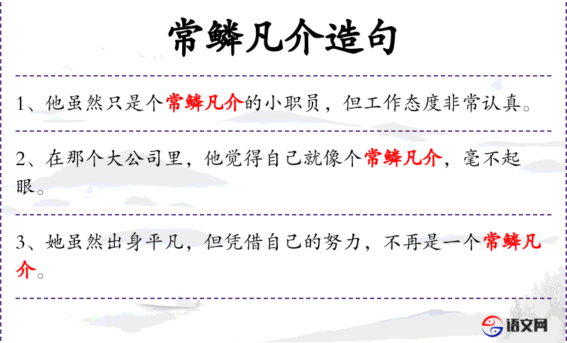 - 常鳞凡介:这个成语源自**古代,用来形容普通、平凡的人或事物。