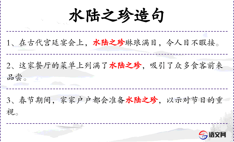 3. 【水陆之珍】 - 水陆:指水陆所产的珍贵食物。指美味佳肴。