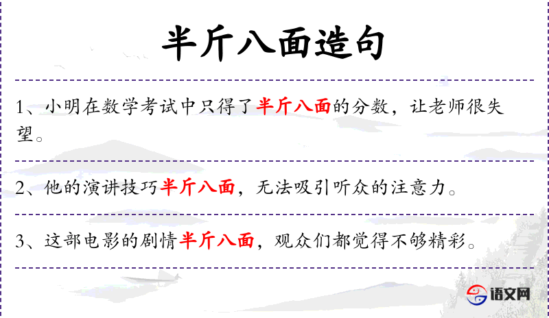 - “半斤八面”这个成语在**文化中常用来形容各方面都差不多,没有特别突出之处。