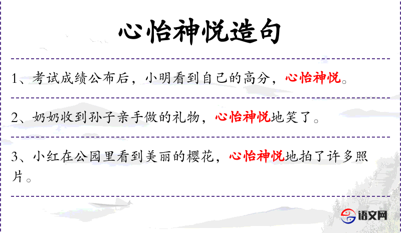- 心怡神悦:形容词短语,表示心情愉悦,精神愉快。
