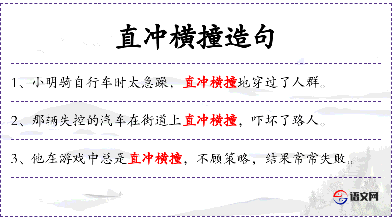 1. 【直冲横撞】 - 任意乱冲乱撞,毫无顾忌。