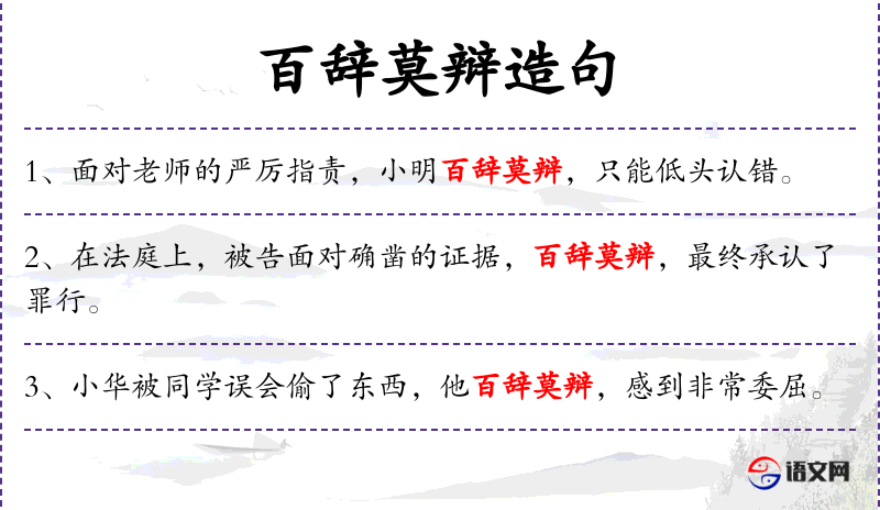 3. 【百辞莫辩】 - 用任何话语都无法辩白。