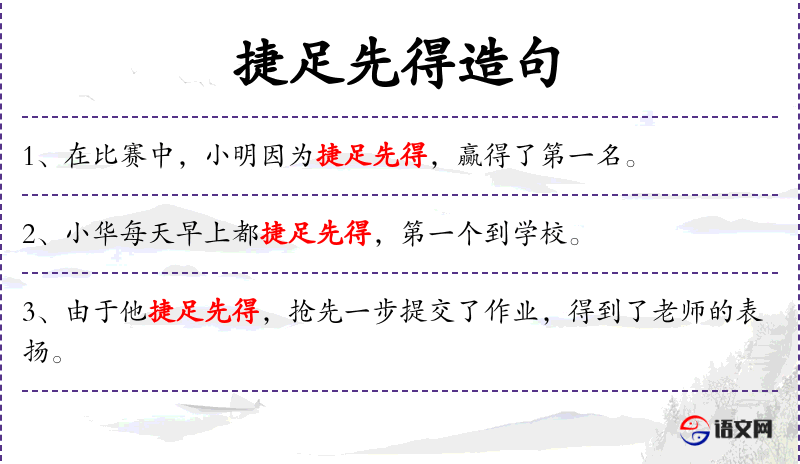 - 捷足先得:形容行动迅速,先于他人得到机会或物品。