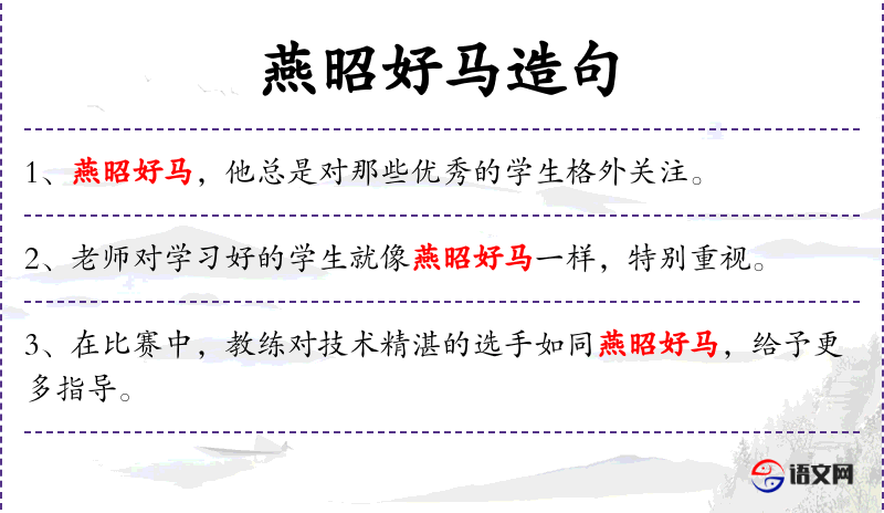 1. 【燕昭好马】 - 燕昭王喜爱骏马。后作求贤之典。