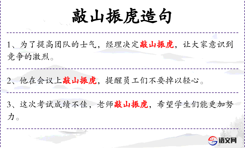 - 敲山振虎:这是一个成语,意思是采取强有力的措施以产生威慑效果。